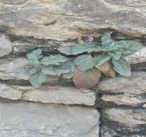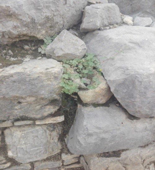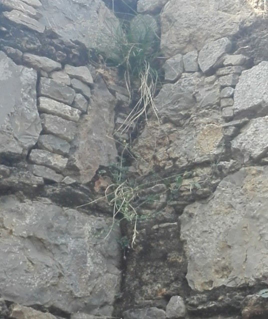 The plant species belong to various families of trees, shrubs, herbs, climbers, grasses, and fodder crops. Mostly abundant plants are mentioned with their biological names Bauhinia variegate, Ficus carica, Pinus roxburghi, Quercus leucotrichophora (Mehmood A. , 2013). According to researcher observation, the binding material between the stones is decreased, due to the non-firm behaviour of wall cracks that have been developed in it which leads to the growth of bio-detergents. Binding material loosens the ability of stone resistance against the climate effect is reduced. The capping above the walls is not enough to cope with environmental effects.